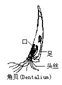 软体动物掘足类,如角贝等,在头部左右小形的叶状部(触手叶tentacular lobe)的边缘着生很多细丝状结构,称之为头丝。被覆以纤毛上皮,末端膨大呈棒状,侧面有凹陷。向各个方向展开。一般认为是感觉器官,兼有捕食之功能。自切性强,可再生。