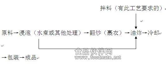 2.熟制(灭菌)设备(蒸煮、烘炒、干燥、油炸等相应的设备);3.裹衣设备或粉碎设备或混合设备(有此类工艺要求的);4.包装设备(封口、生产日期标注、计量称重等设备)。